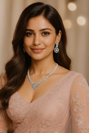 DETAIL : This exquisite necklace and earrings set is inspired by floral patterns, featuring shimmering stones intricately arranged to resemble blooming flowers. Perfect for formal events, it radiates timeless elegance and adds a touch of sparkle to your ensemble.