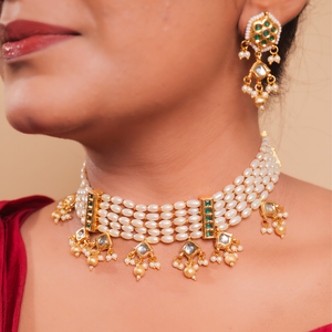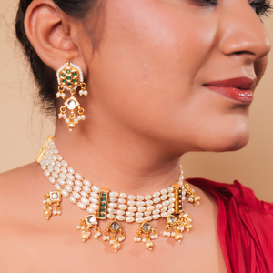 Elegant Pearl and Kundan Choker Necklace Set