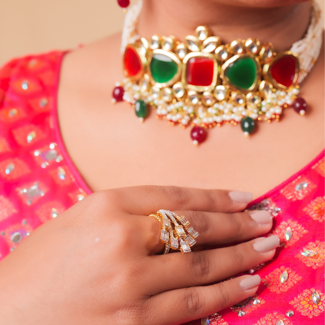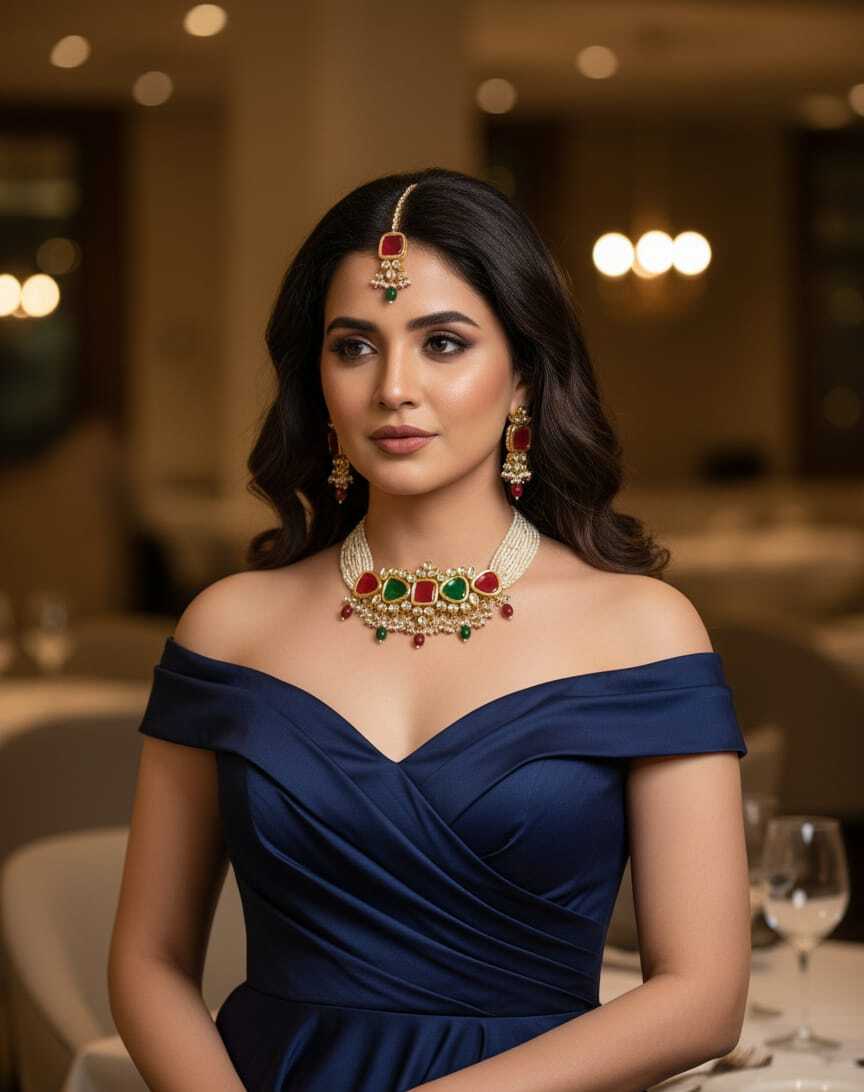 Ideal for weddings, festive celebrations, and grand traditional events, this exquisite choker set complements both ethnic and Indo-western outfits. Perfect for brides, bridesmaids, and wedding guests, it pairs beautifully with lehengas, sarees, and elegant gowns. Whether you’re attending a wedding reception, engagement ceremony, Diwali celebration, or festive dinner party, this necklace adds a royal allure to your overall look. It’s also a perfect pick for pre-wedding photoshoots, sangeet nights, and festive gatherings where you wish to stand out with regal sophistication.