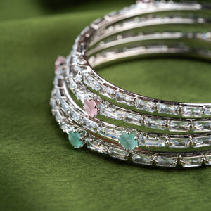 DETAIL : The Celestia Carat Enchanted Bangles Set features five intricately designed bangles adorned with vibrant colored stones. Their exquisite craftsmanship and delicate patterns add a touch of magic to any ensemble, making them a perfect accessory for both casual and formal occasions