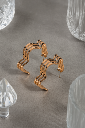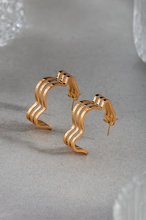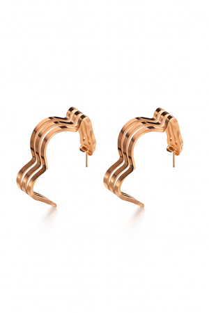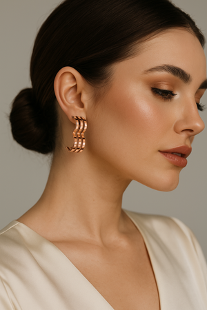DETAIL : The Celestia Carat Wave Hoops feature a modern, wavy design in a sleek rose gold finish. These chic and unique earrings offer a stylish twist on the classic hoop, perfect for adding a touch of contemporary flair to any outfit.