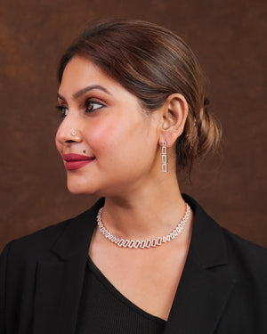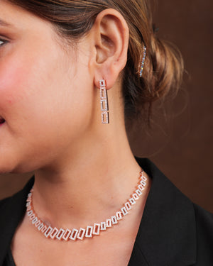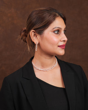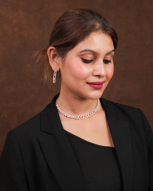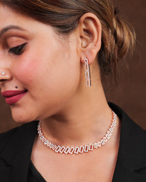 DETAIL : This set is perfect for festive occasions, traditional ceremonies, or as a statement piece for special events. The animal motifs bring a regal and unique touch, pairing well with ethnic wear like sarees, lehengas, or salwar suits.The necklace showcases a series of interconnected square links, creating a modern and eye-catching look. The matching earrings complement the necklace beautifully with a similar square link design.