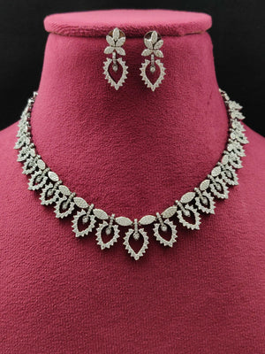 DETAIL : This magnificent necklace and earrings set features intricate petal motifs adorned with sparkling st; ones. The delicate design adds a royal touch to any outfit, making it perfect for weddings, formal events, or special occasions.